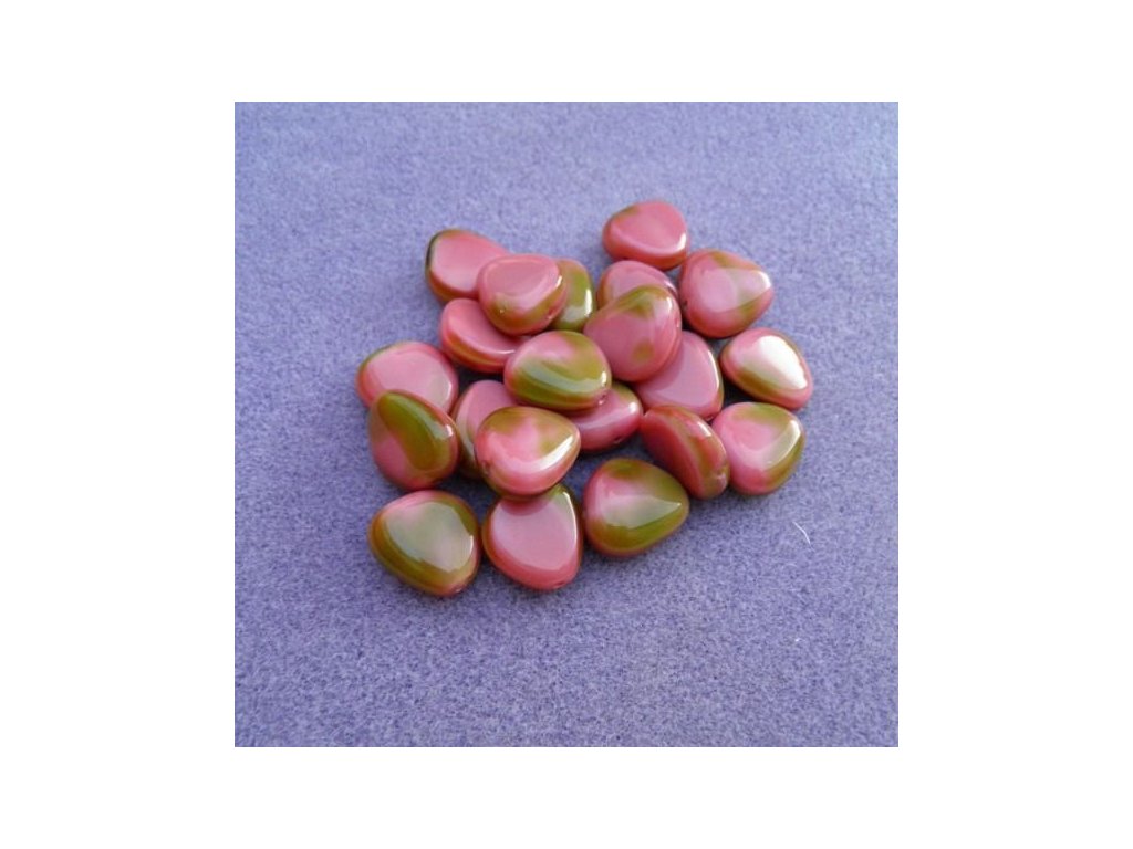 Korálky mačkané - MKL035 - oblázek starorůžový se zeleným žíháním