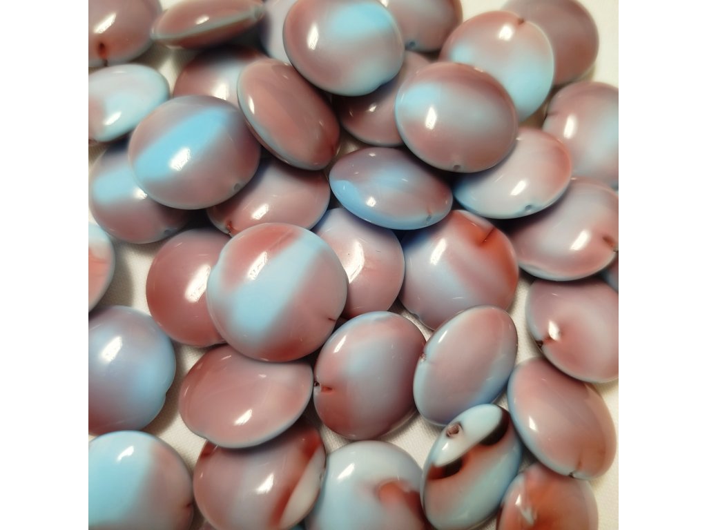 mačkaný korálek z perleťového skla. Kombinace starorůžového skla a bílého. Barevné žíhání je u každého korálku různé. V případě objednávky více korálků vybíráme podobné barevné kombinace.